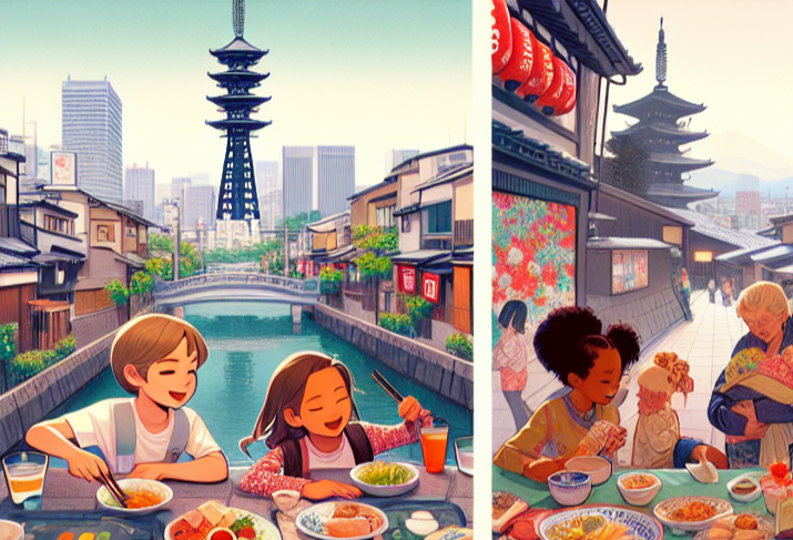 오사카는 테마파크와 다양한 액티비티가 풍성하여 활동적인 여행을 원하는 가족에게 더욱 적합합니다. 유니버설 스튜디오 일본이나 오사카 성, 카이유칸 수족관 등 다양한 시설에서 아이들이 신나게 놀 수 있습니다.